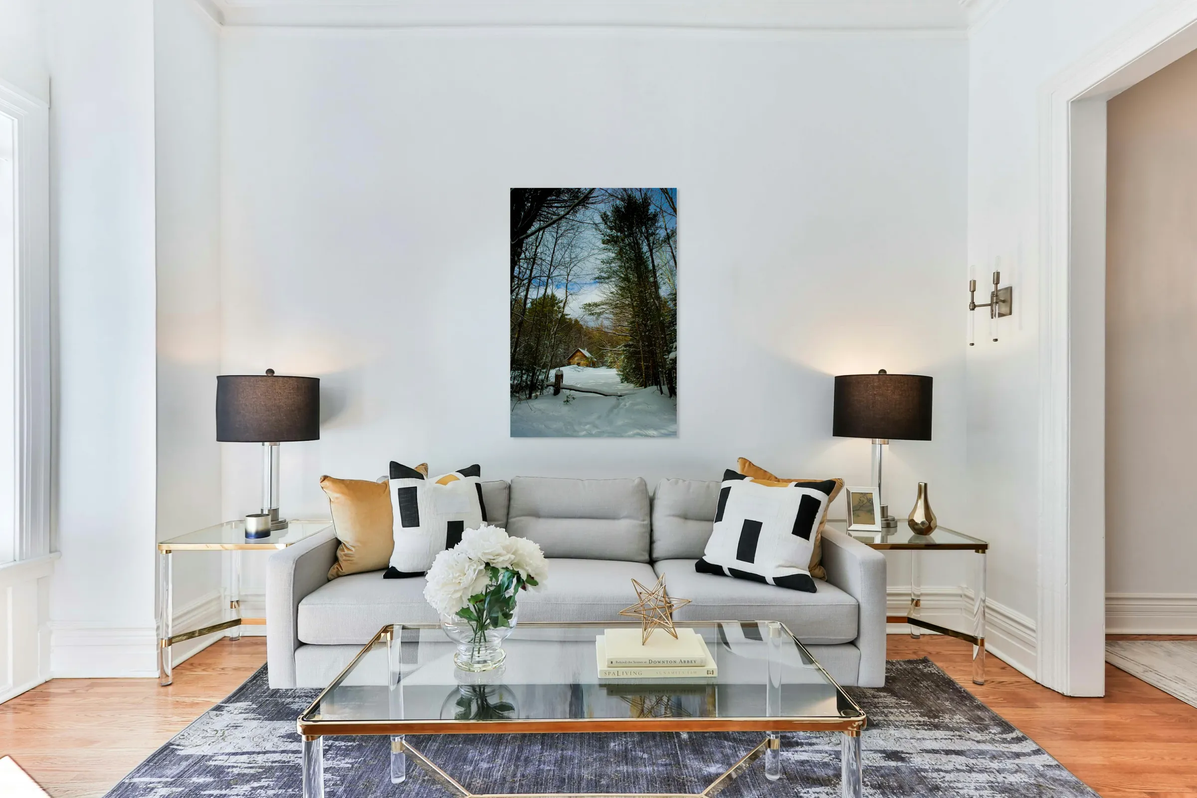 Printed to the edge - Ready to hang - provided with 4 premium polished aluminum stand off ( wall screws and mounting hardware provided )