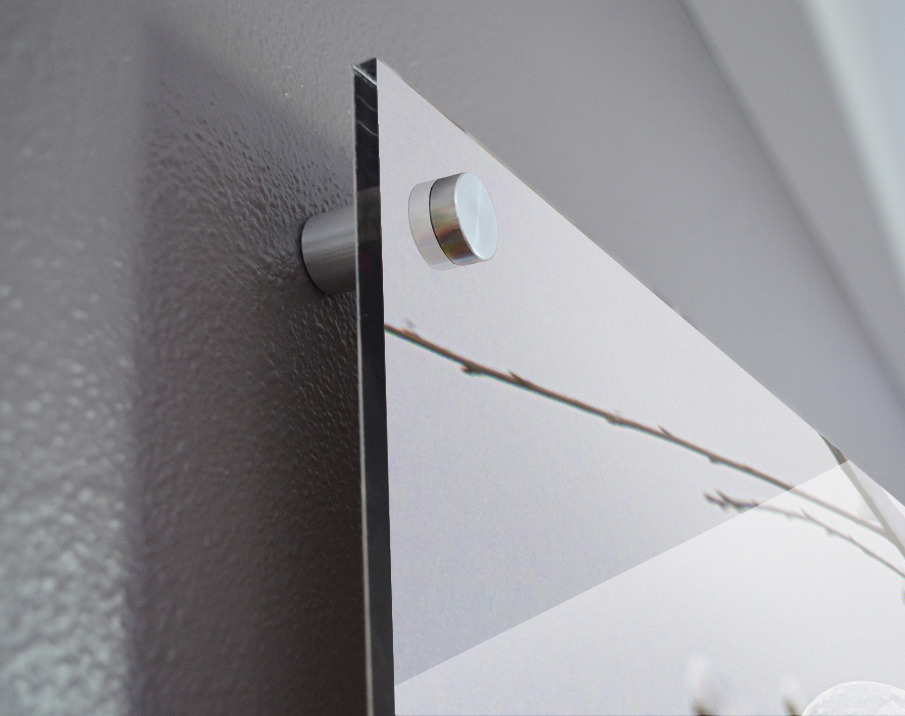 Impression sur acrylique avec entretoises ( cylindres métalliques )