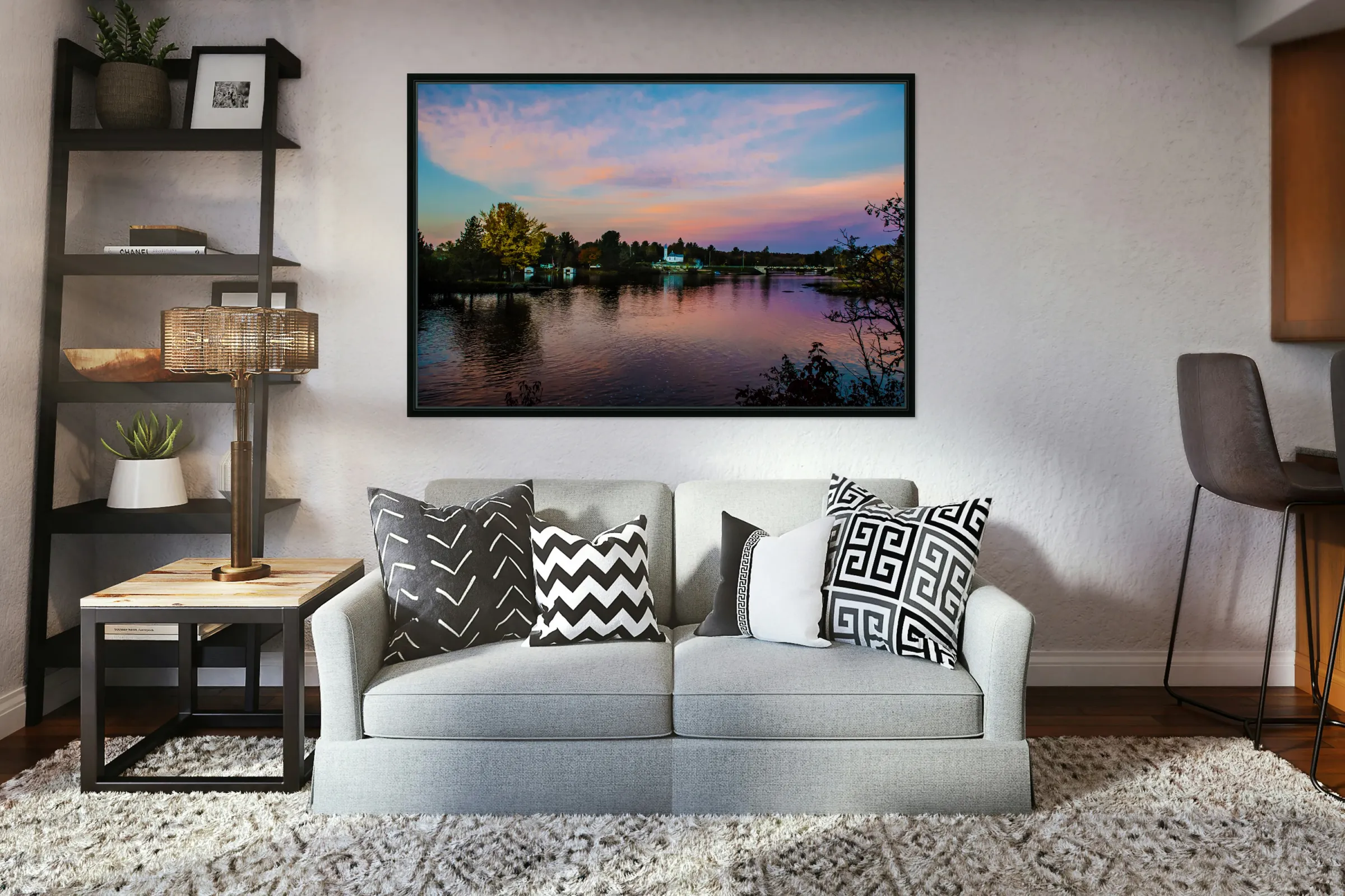 Impression sur acrylique avec cadre flottant en arrière.