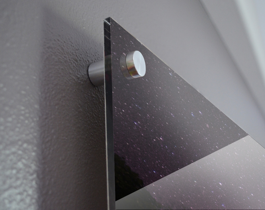Impression sur acrylique avec entretoises ( cylindres métalliques )