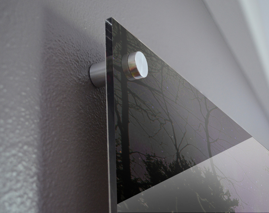 Impression sur acrylique avec entretoises ( cylindres métalliques )