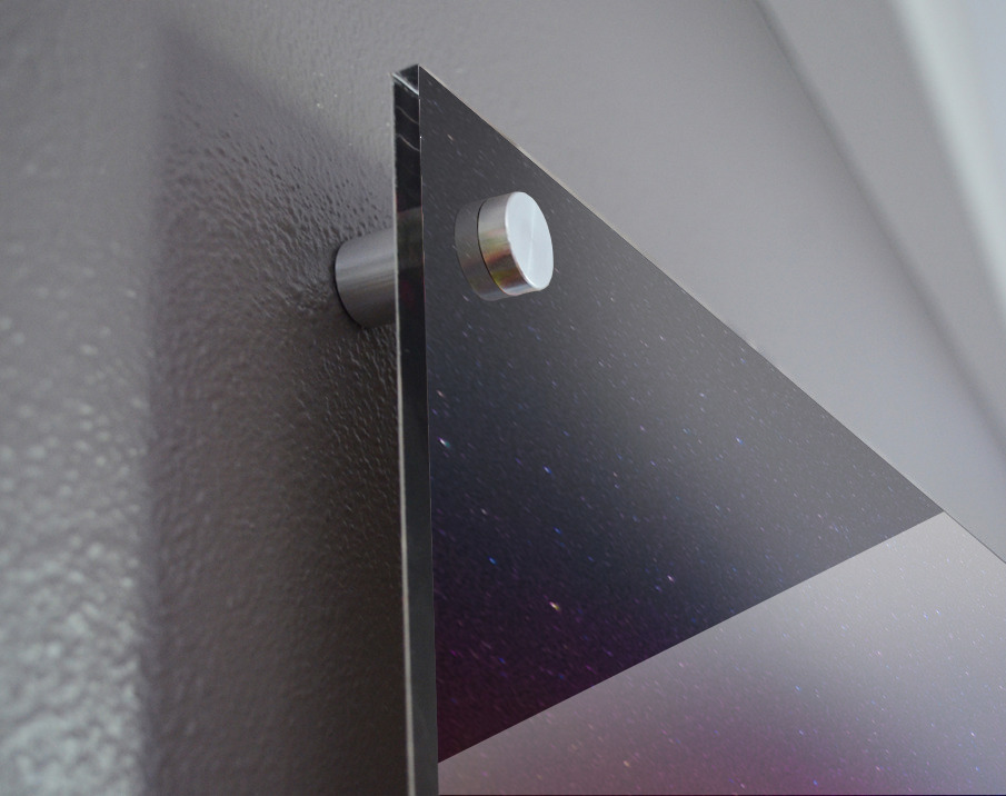 Impression sur acrylique avec entretoises ( cylindres métalliques )