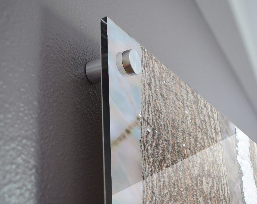 Impression sur acrylique avec entretoises ( cylindres métalliques )